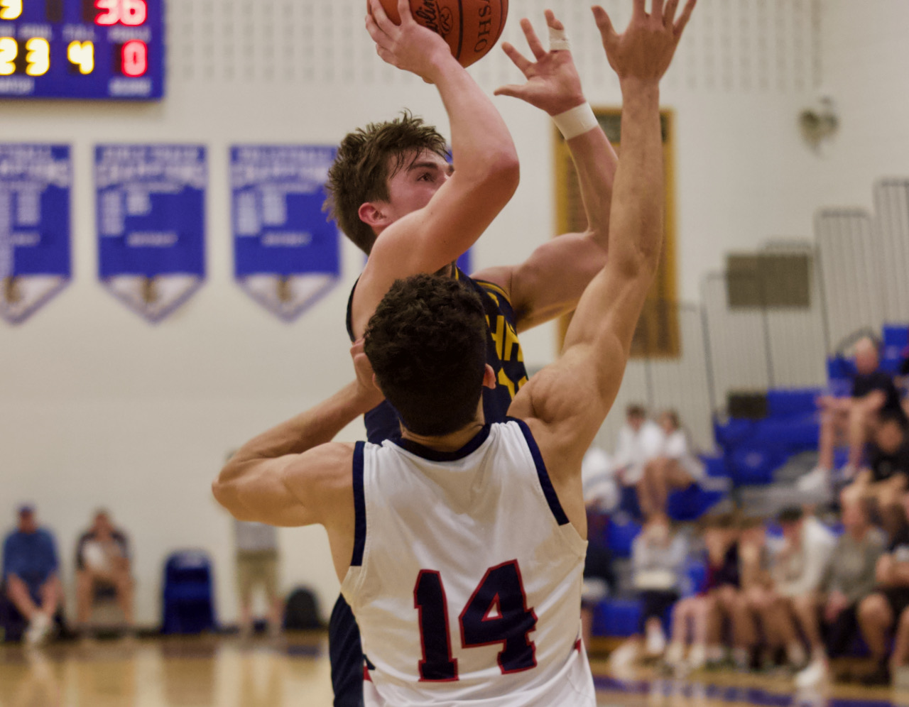 The Falcons trailed 20-11 after the first quarter, but settled down early in the second. A Jarvis 3-pointer off a Bradey Krichbaum assist with 6:26 to play in the half cut JFK’s advantage to 22-19.